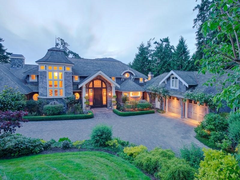The Gated Waterfront Estate is an extraordinary property that boasts an elegant 5,800 square foot main residence designed by James Grieve, a 3 bedroom guest house, 2 boathouses with 280’ of shoreline, manicured grounds and spectacular views.