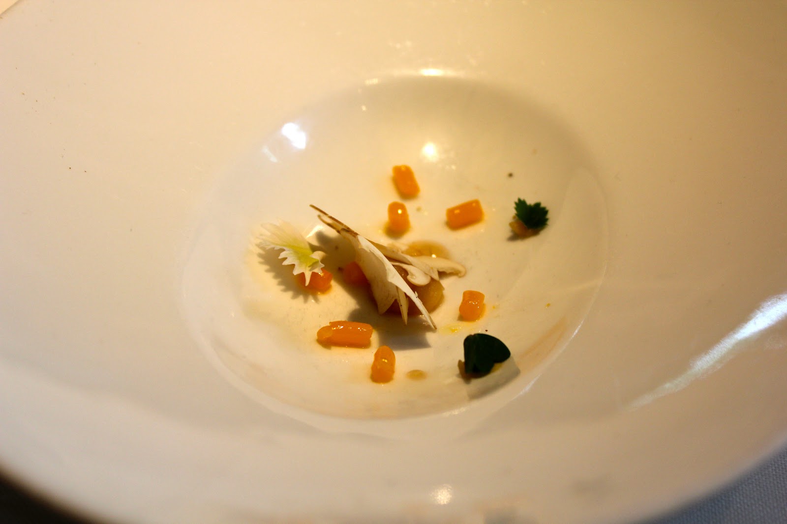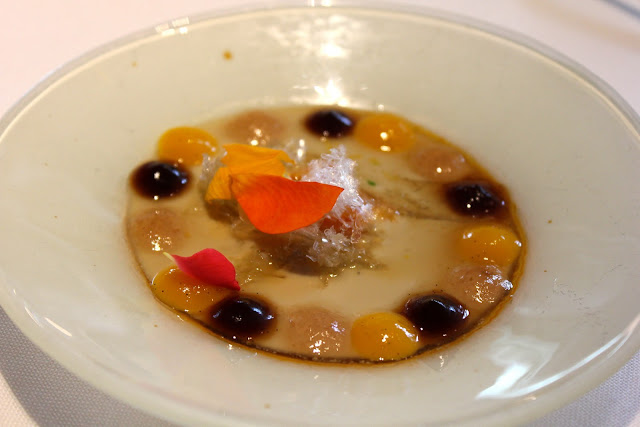 mushroom consommé with miso and yolk gnocchi