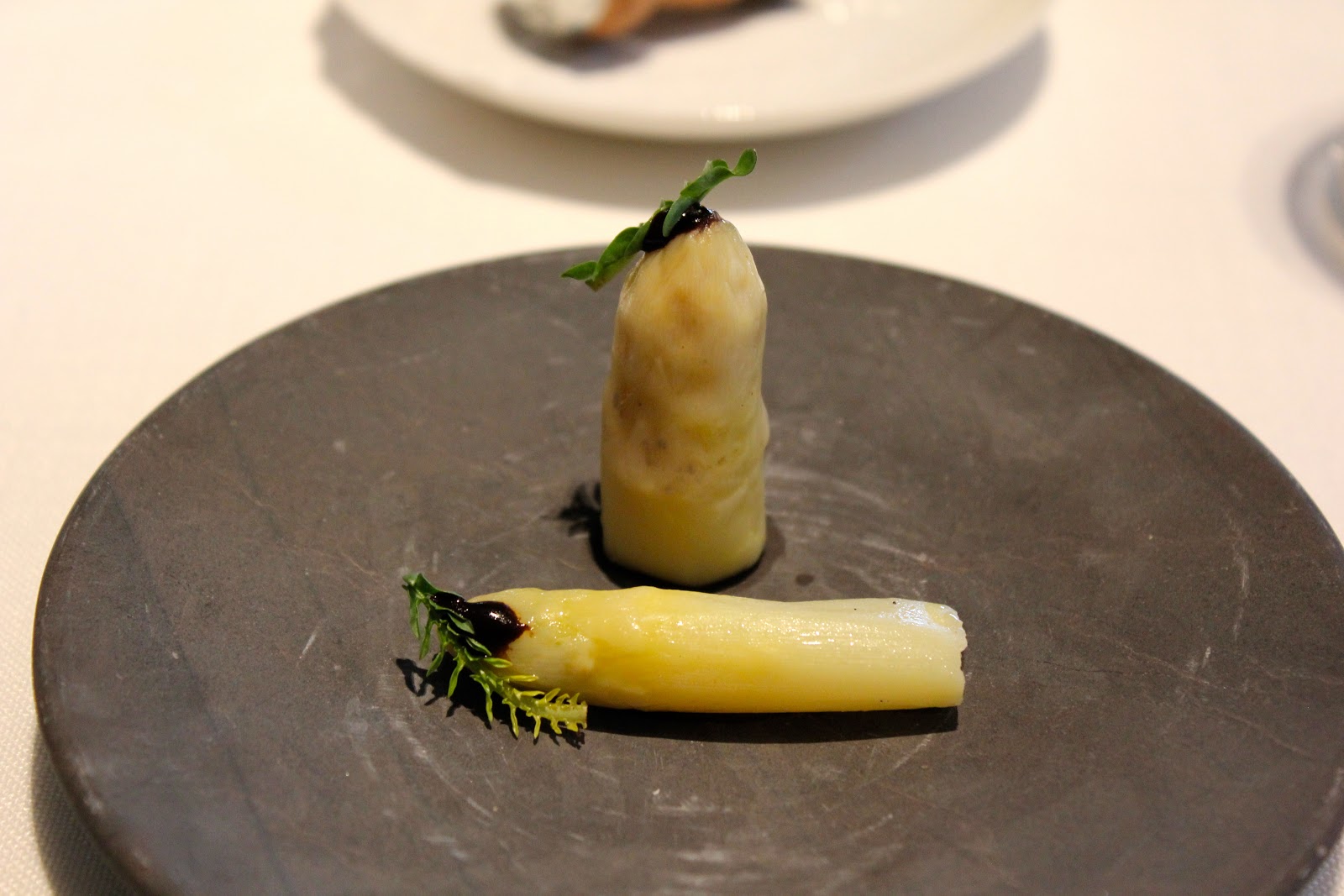 white asparagus, truffle ice cream